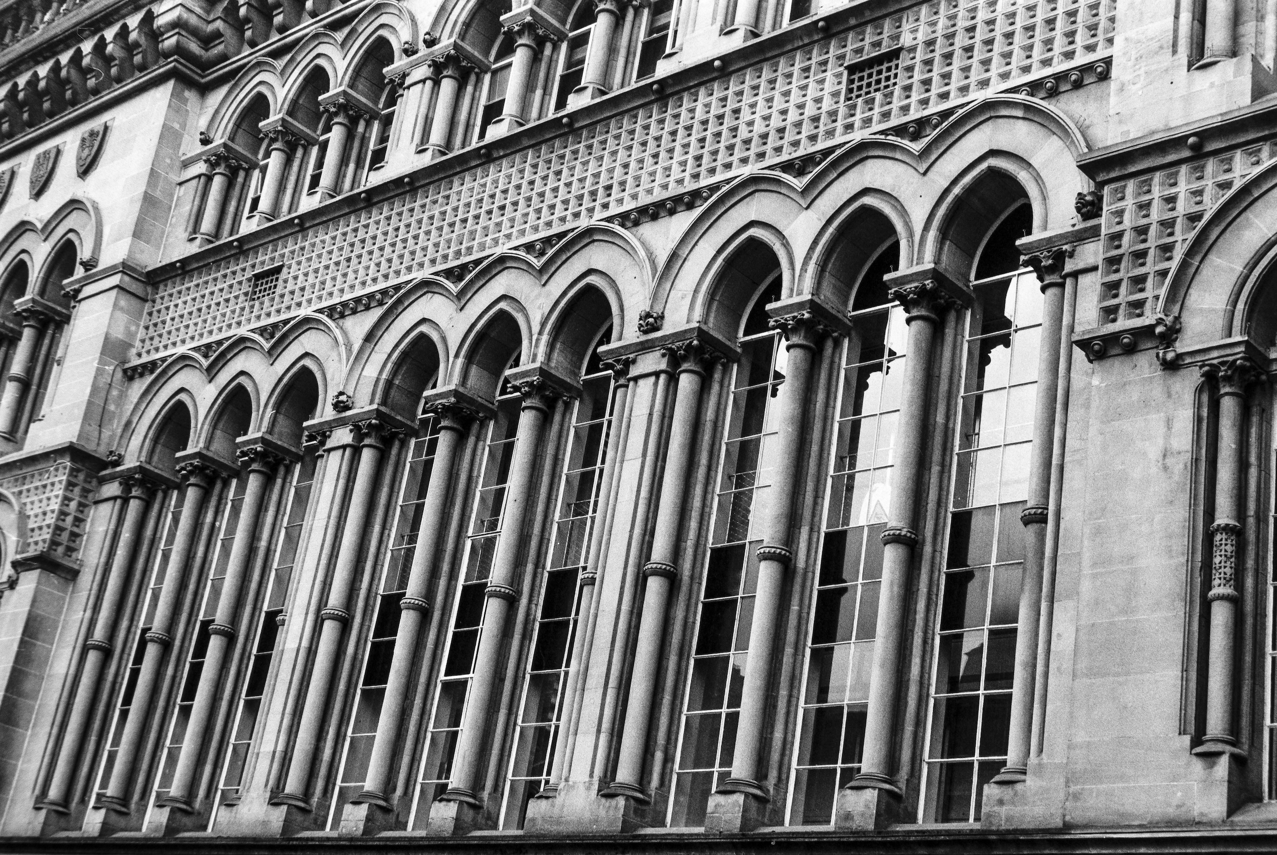 I was out in Glasgow in February 2019 with my then new-to-me Olympus OM-2n and a roll of FP4+. It was a really gloomy day (when is it not in February in Scotland) so I wasn’t expecting much. I had previously pushed FP4+ a little bit before (the highest being 400, +1⅔ stops) and loved the results, so I thought since I had nothing to lose that day I said “go big or go home” and cranked the camera’s meter up to 500.