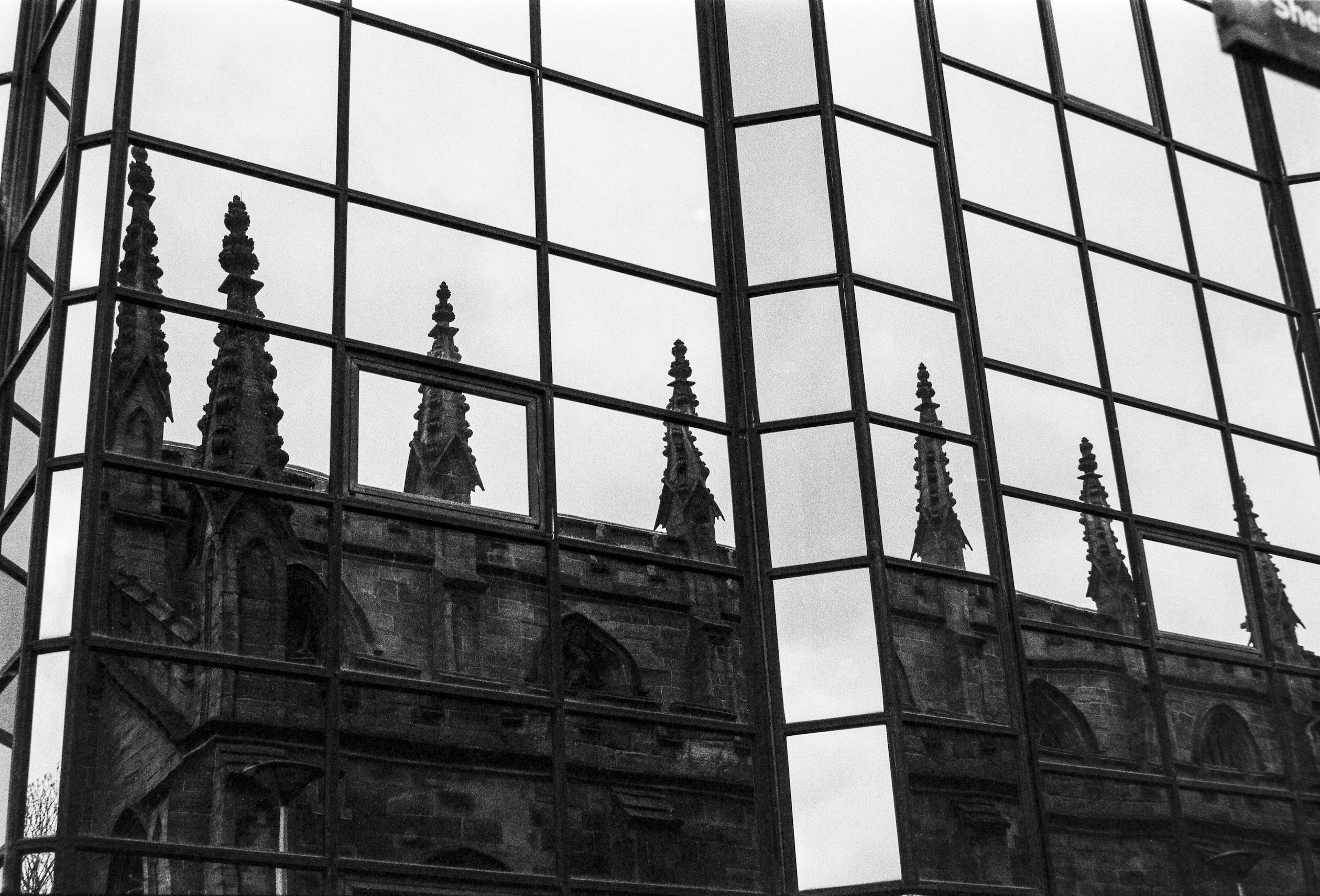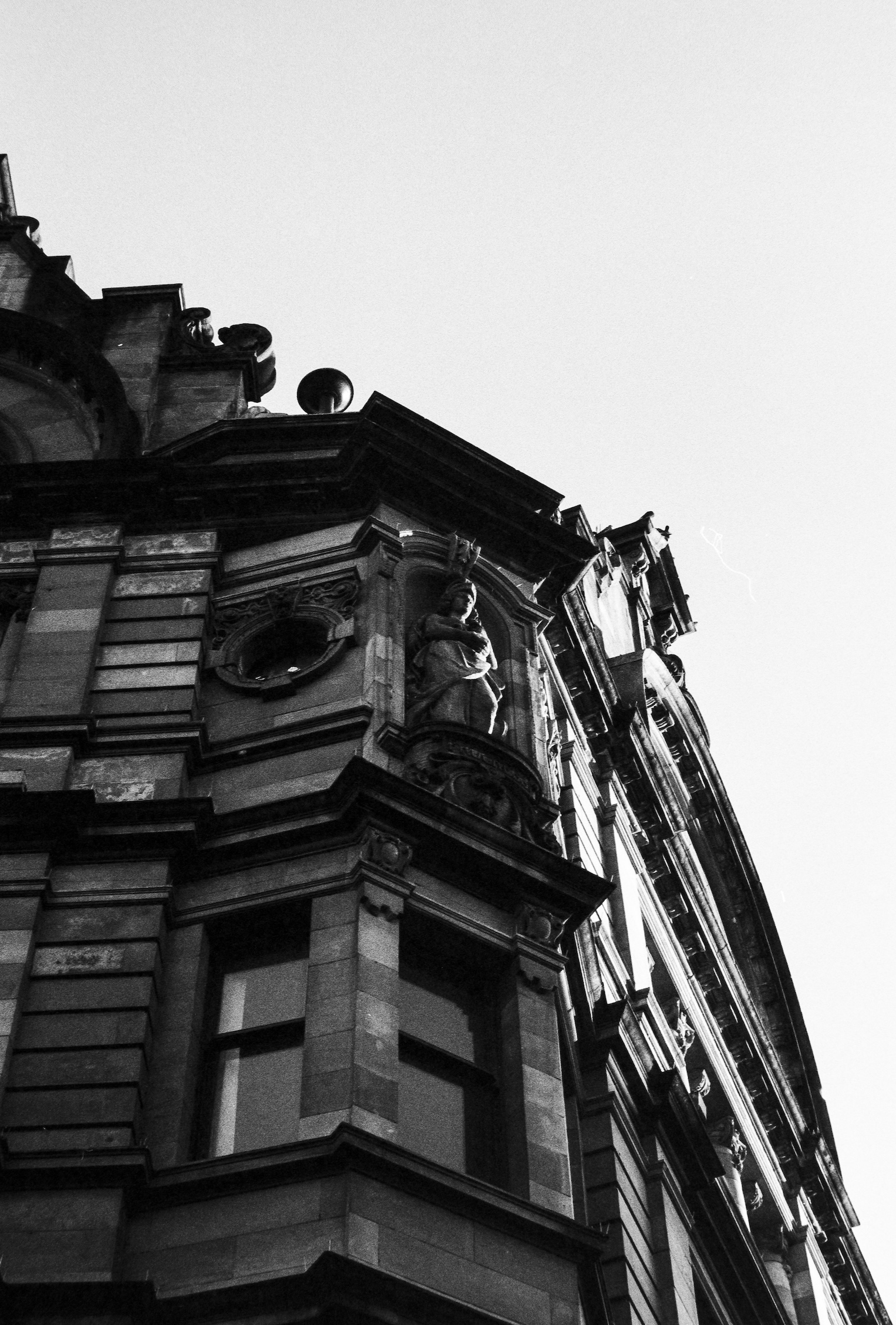 I was out in Glasgow in February 2019 with my then new-to-me Olympus OM-2n and a roll of FP4+. It was a really gloomy day (when is it not in February in Scotland) so I wasn’t expecting much. I had previously pushed FP4+ a little bit before (the highest being 400, +1⅔ stops) and loved the results, so I thought since I had nothing to lose that day I said “go big or go home” and cranked the camera’s meter up to 500.